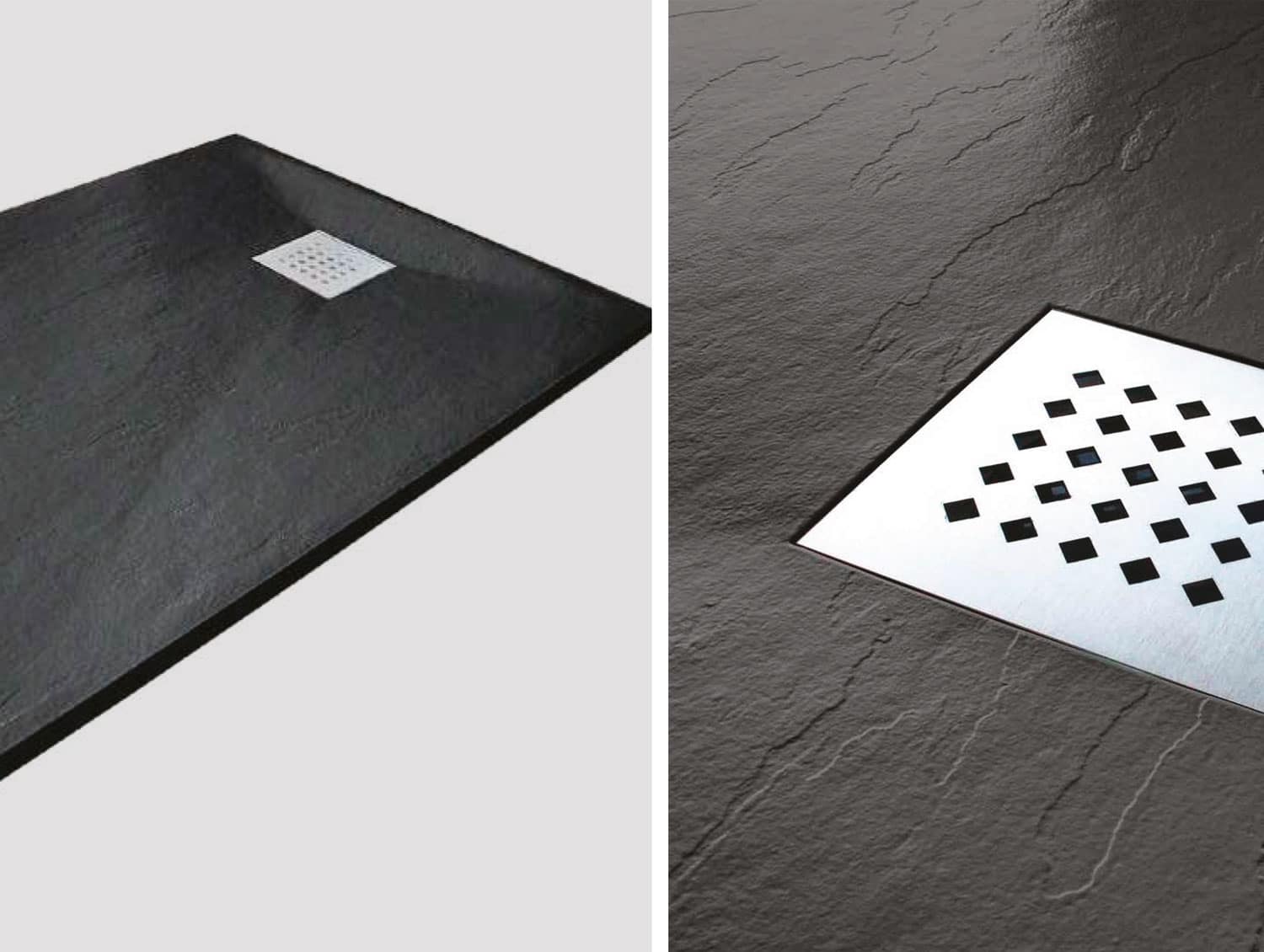 Shower tray composed of polyurethane blends and mineral fillers, also suitable for on-site cutting in full-body finish. Non-porous surface, slate or stone effect (depending on size), easy to clean and repair with available repair kits. Hydro and oleo repellent, treated for the highest level of hygiene.